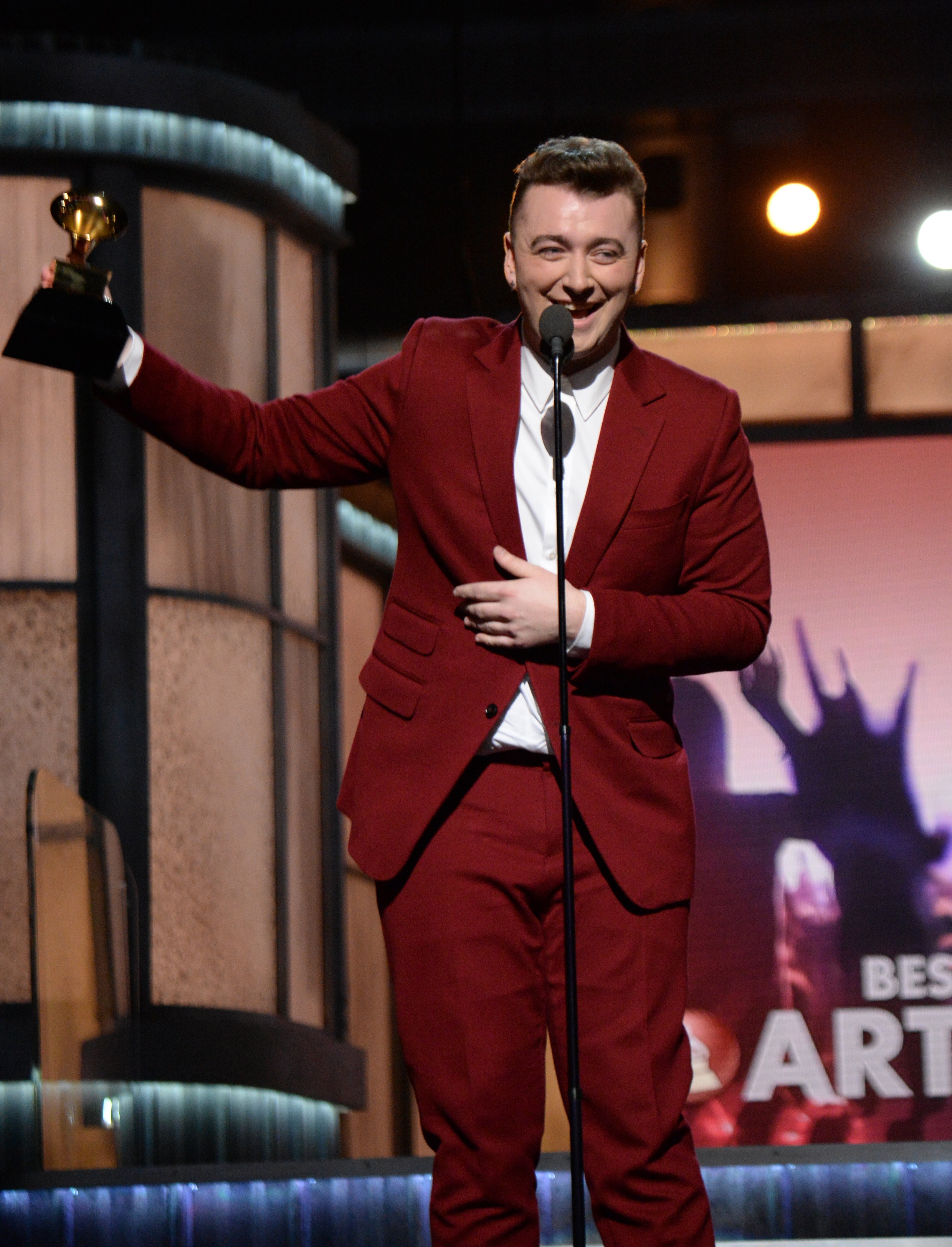 “I want to thank the man who this record is about … Thank you so much for breaking my heart because I have four Grammys,” said Smith, who also won best pop vocal album for “In the Lonely Hour.”