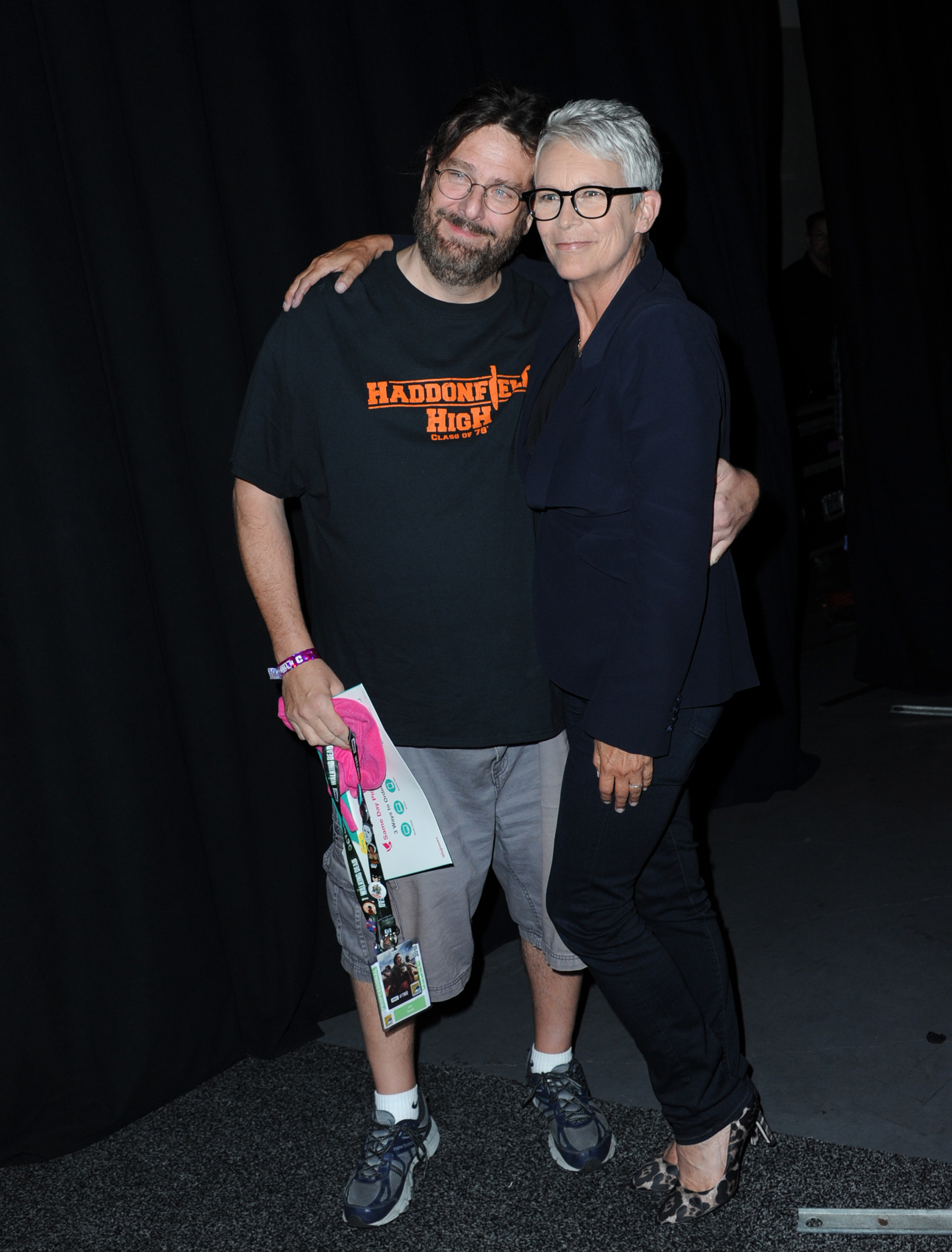 In Comic-Con’s Hall H, the massive room that holds the highest profile presentations and hosts the biggest movie and television stars, there is still a strict division between the actors on stage and those in the audience. But Jamie Lee Curtis changed that Friday, walking off-stage during the presentation for the new “Halloween” to embrace an emotional fan.