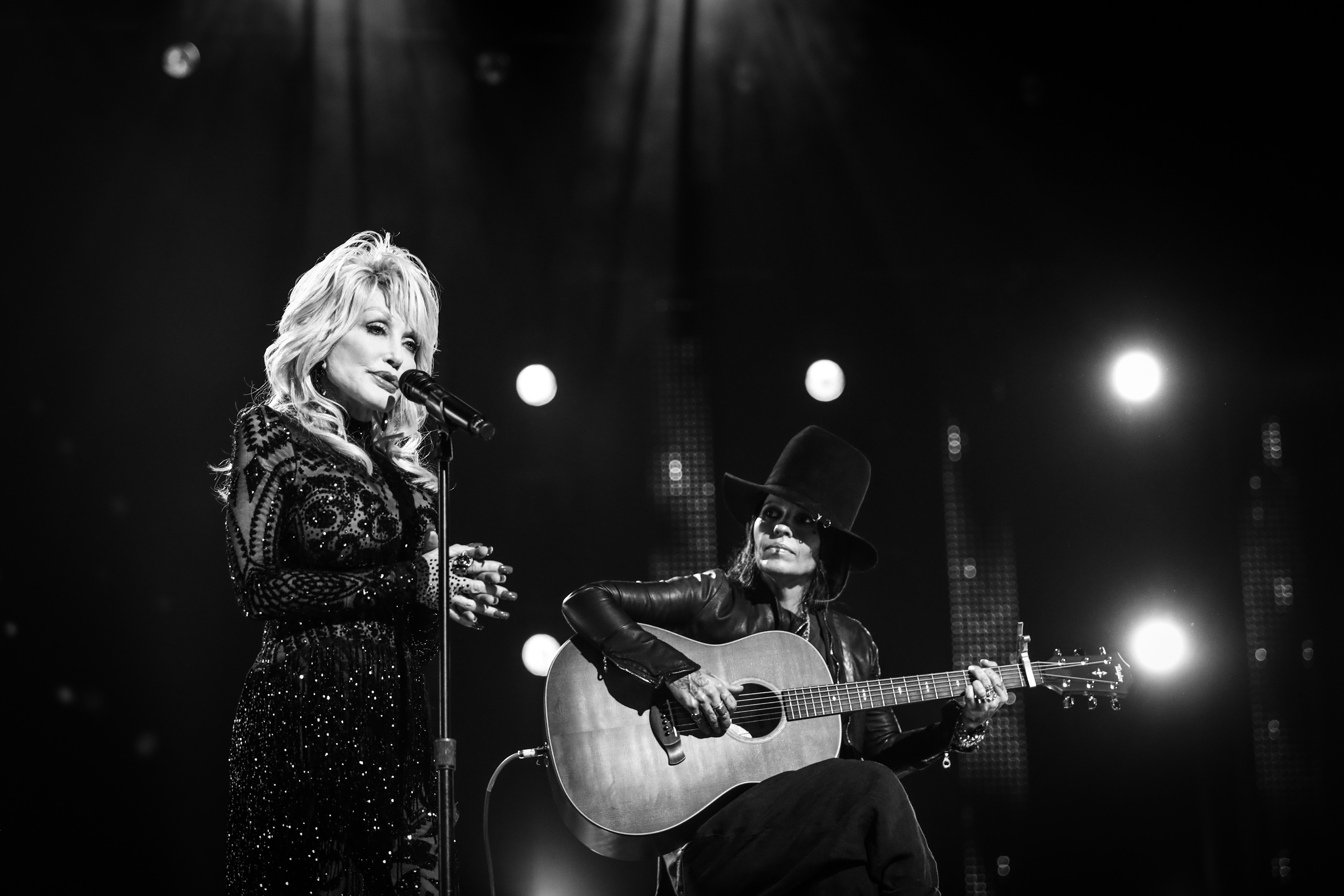 Dolly, MusiCares first-ever country music honoree, closed out the night on a high note when she took the stage with Linda Perry to sing “Coat of Many Colors.”